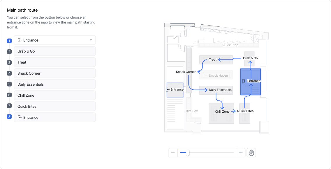 이 경로는 **매장의 '노출 효과가 가장 큰 공간 흐름'**을 뜻하며, 상품 진열, 프로모션, 매장 동선 설계에 있어 핵심 전략 포인트가 됩니다.